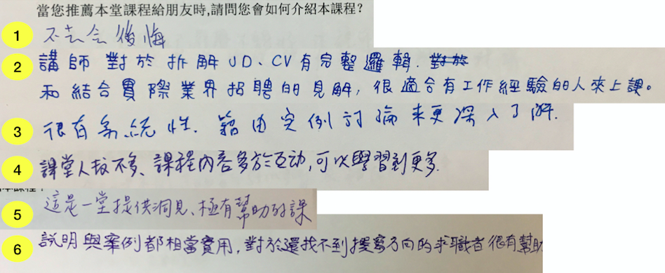 - 講師有十年以上外商行銷中高階主管經驗,負責面試初階員工到中階主管不同職位的下屬,