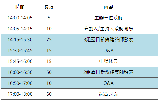 - 主持:龔書章(國立交通大學建築研究所專任副教授兼所長)