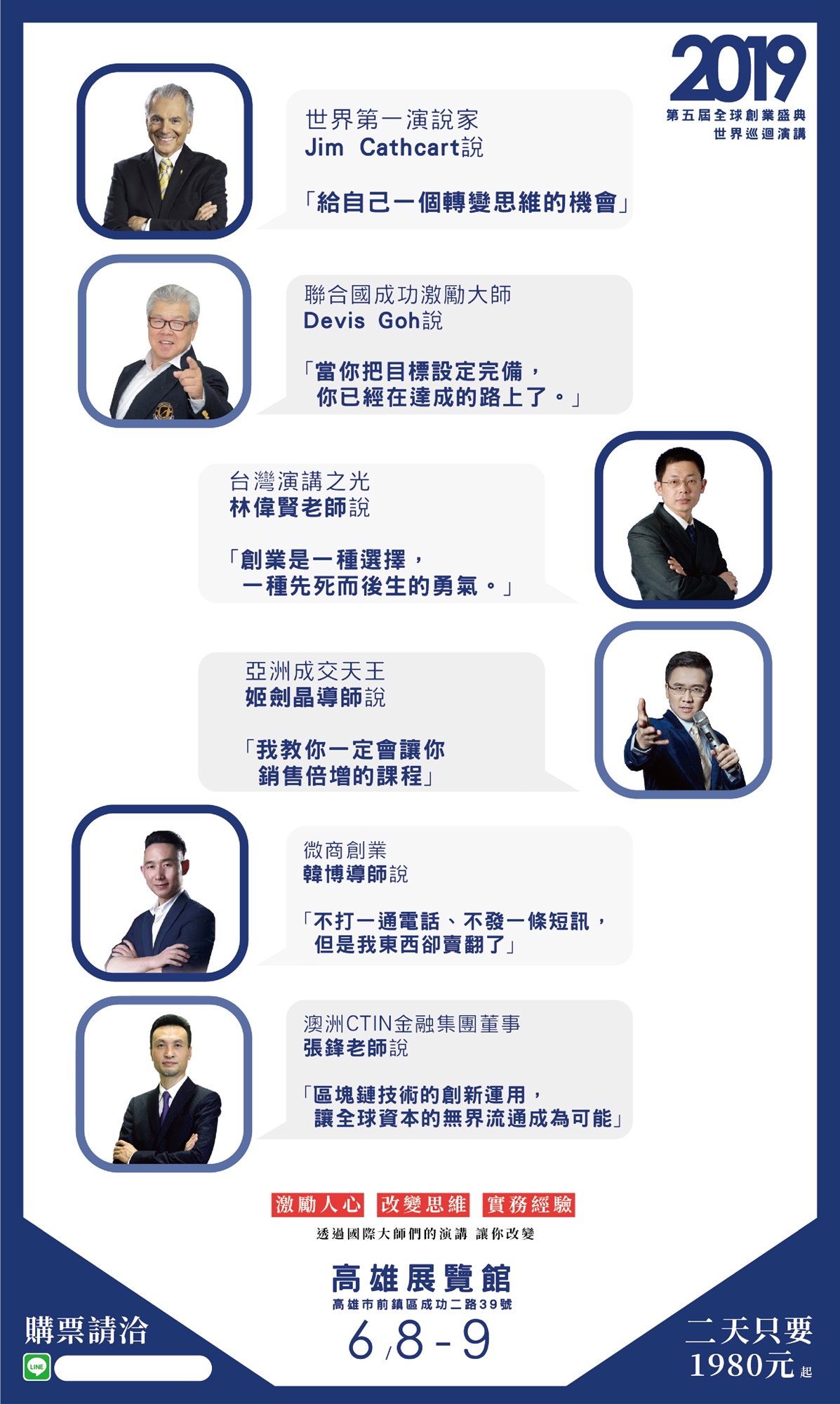另外第五屆全球創業盛典主辦單位將由活動的票券盈餘中提撥 30%,捐助高雄市政