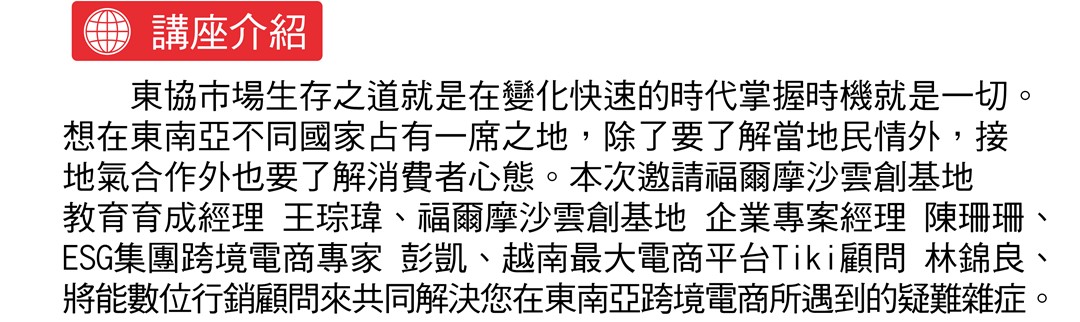 4/25 【創趨勢】進軍新南向-跨境電商X通路X社群關鍵趨勢論壇