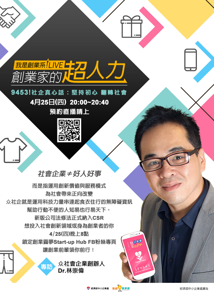 直播頻道:創業圓夢 Start-up Hub FB粉絲專頁https://www.facebook.com/StartUpTaiwan