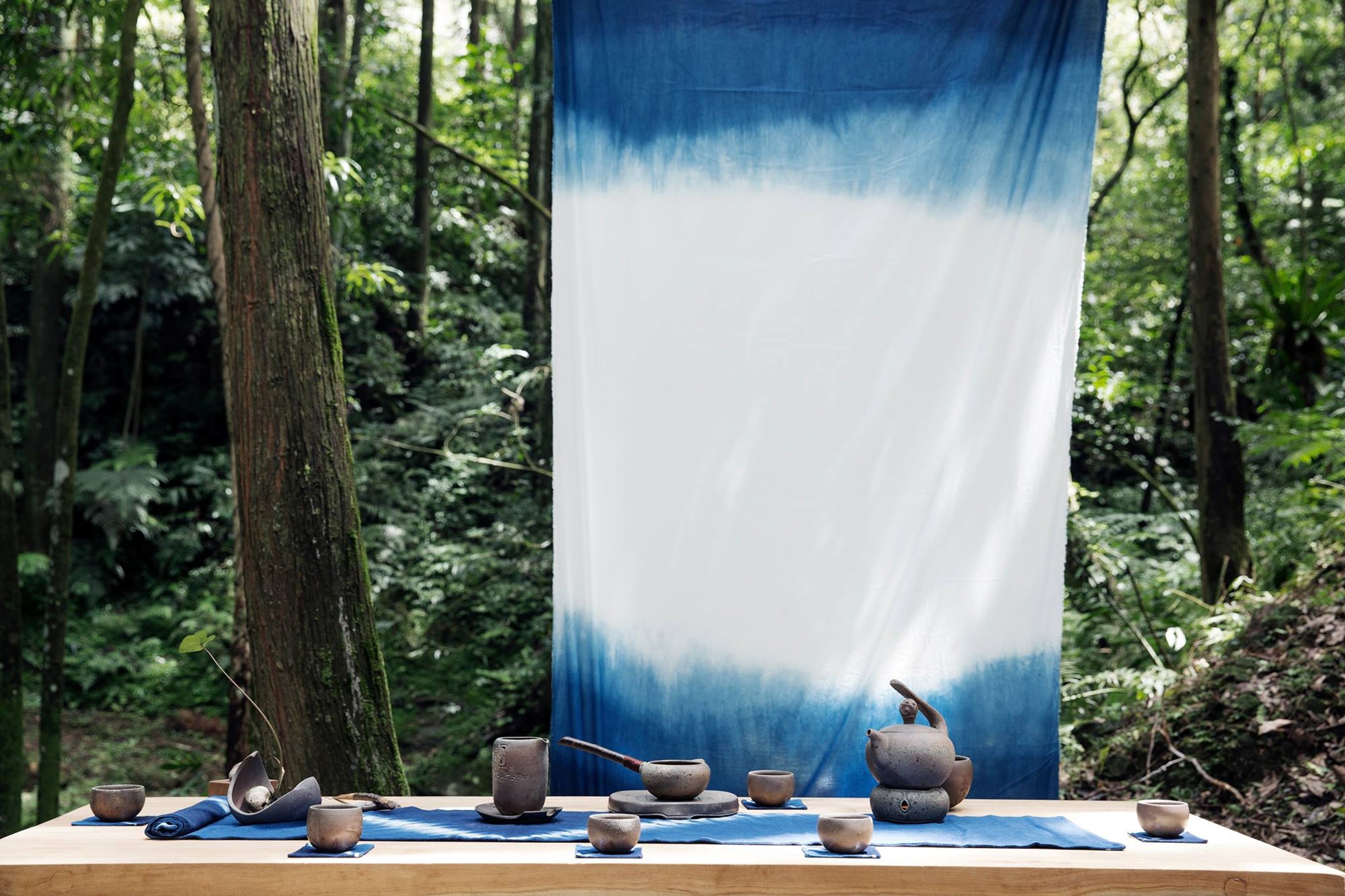 藍染與陶藝的激盪,伴隨茶香,在渲染的藍色調上,格外寧靜。