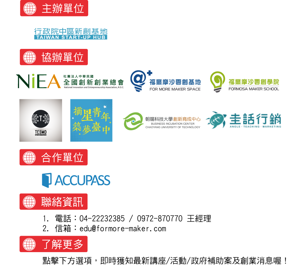 福爾摩沙雲創學院-至東協廣場後請搭乘B棟7號電梯直達13樓