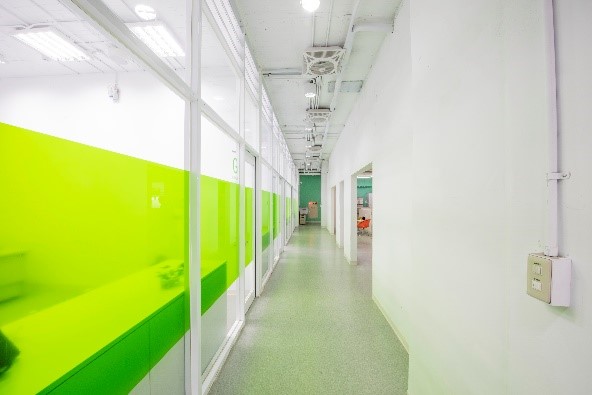 大廳懶骨頭休息區、零食不定期出沒茶水區、淋浴間、大型演講教室、中小型會議室、商洽區