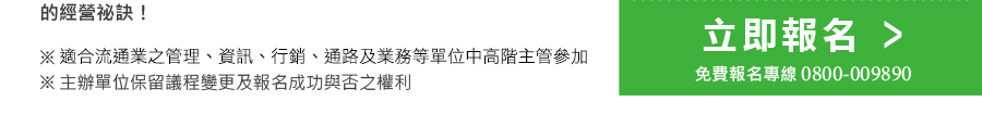 本活動針對流通行業之企業客戶舉辦,主辦單位保留修改活動細節與報名成功與否的權利,無須事前通知,並有權對本活動所有事宜作出解釋或裁決。