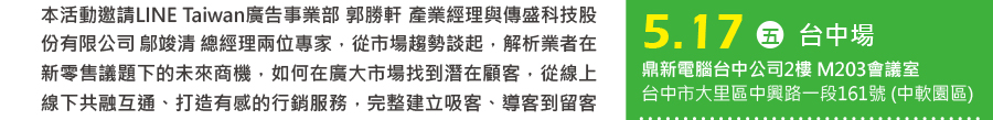 《5/17台中場》創造市場機會、精準抓住關鍵客群,找到客戶沒說出口的需求