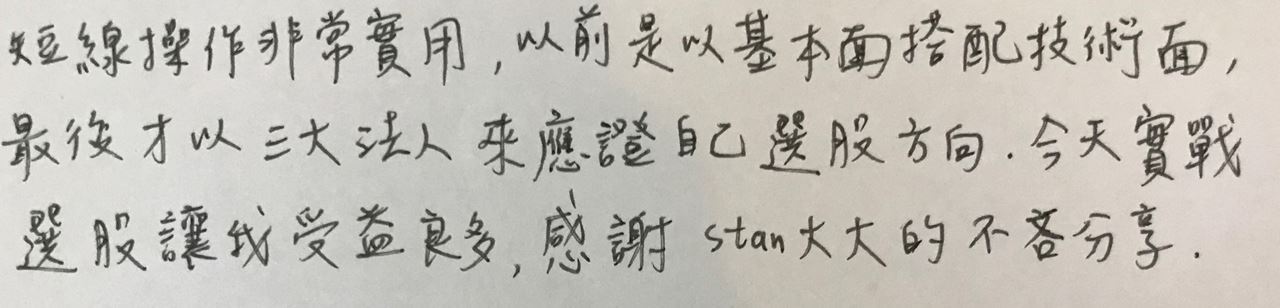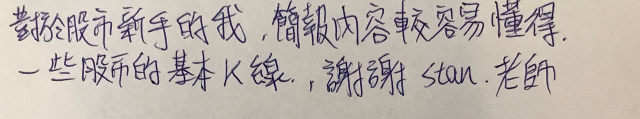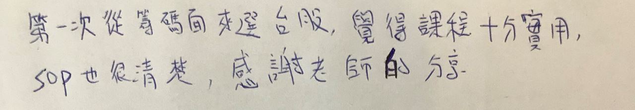 您好,我是Stan,上一份工作是台積電12廠的《研發工程師》。我從20歲操作台股到現在,擁有十年的交易經驗,出社會前,靠台股投資存到人生第一個100萬。從2012年開始,每年穩定操作台股獲利20%以上,最後在2016年決定離開台積電,創立Across闊思學院,希望能帶動新竹的學習風氣,幫助身邊的人一起成長!