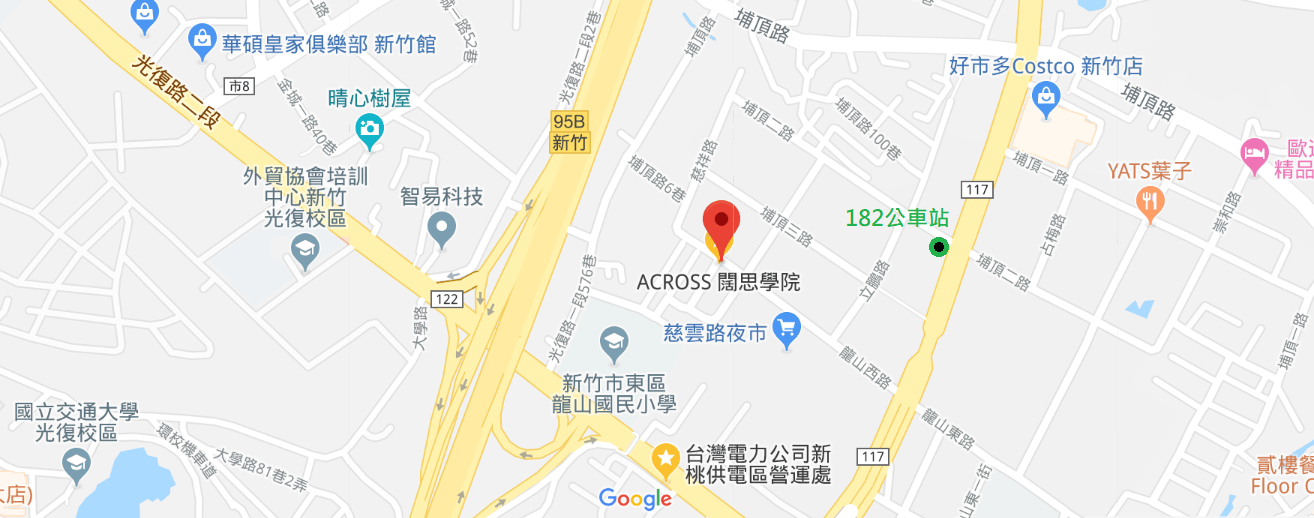 - 自行開車:沿中山高速公路/國道1號前往新竹走95A-新竹出口前往公道五路二段,延公道五路往竹東方向,在慈雲路(117縣道)右轉,靠右直行至龍山西路右轉,大約300公尺,學院即在您的左側。