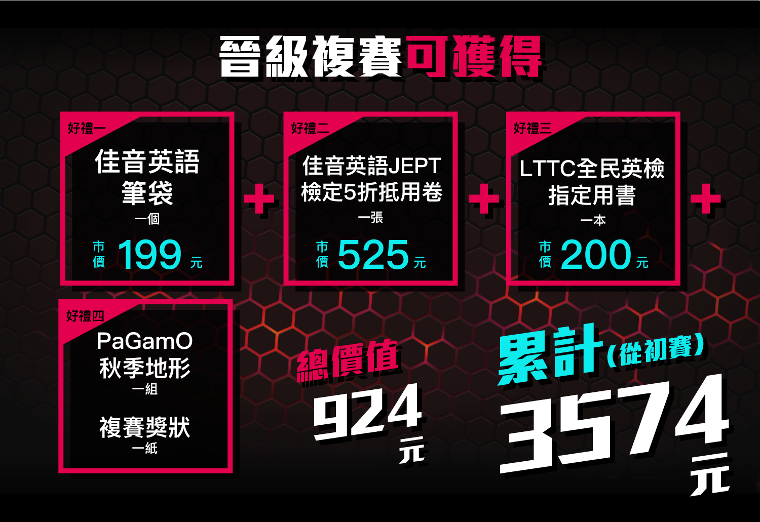 4. PaGamO秋季地形一組、複賽獎狀一紙。