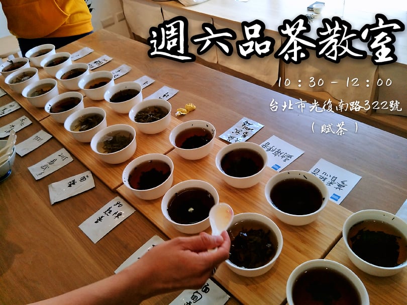 在為期五堂的茶葉評飲課程結束之際,緊接而來的,賦茶將教授如何泡茶,蒐羅國內、外多種類型的茶葉,包含黑茶(普洱茶)、紅茶、綠茶、青茶(烏龍茶)、白茶等等多樣茶品沖泡。