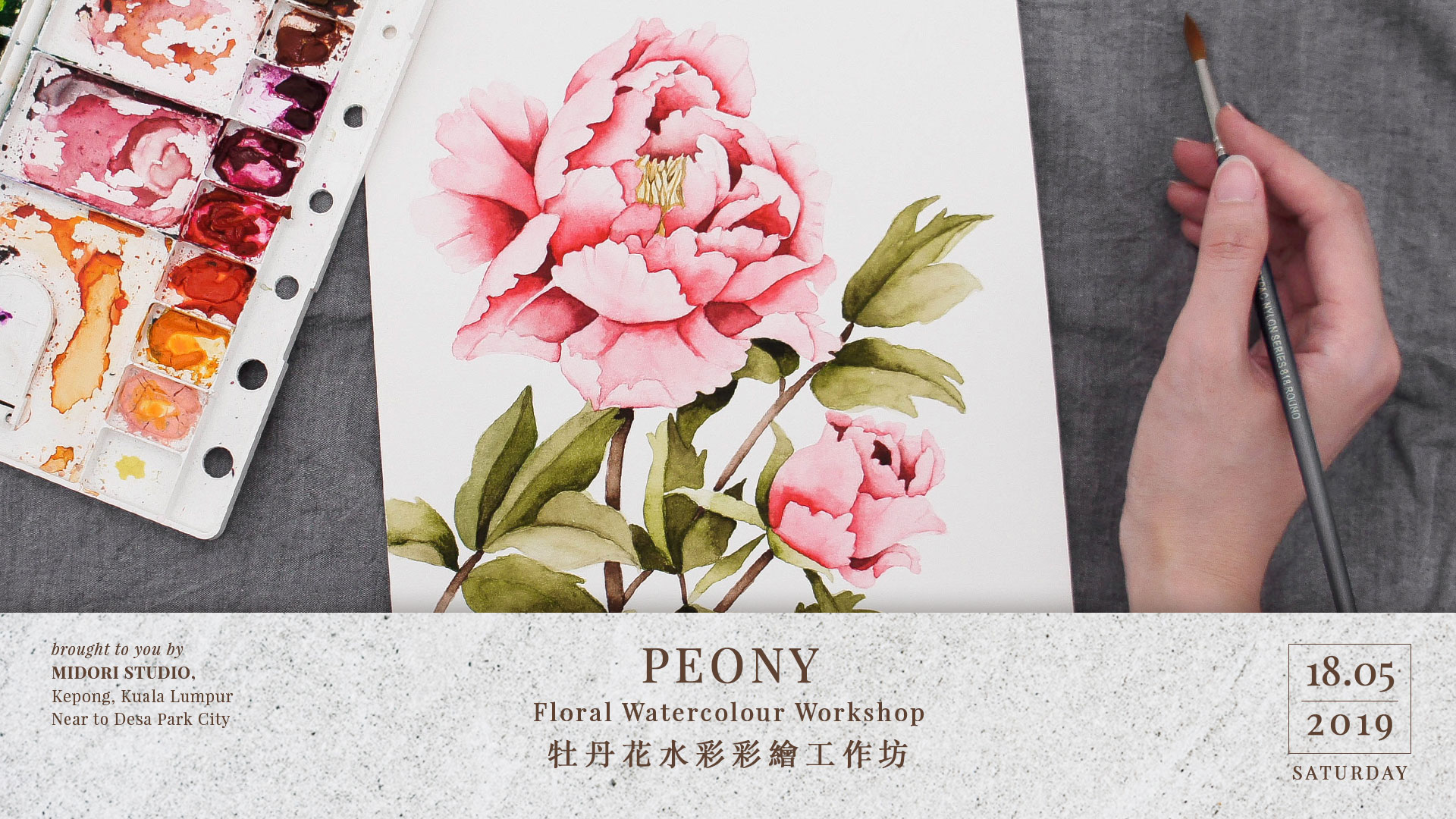 {Peony Floral Watercolour Workshop • 牡丹花水彩彩繪工作坊}