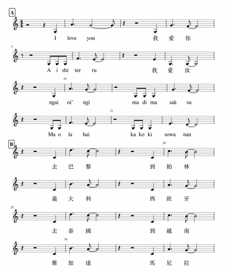 愛愛愛全世界詞曲譜