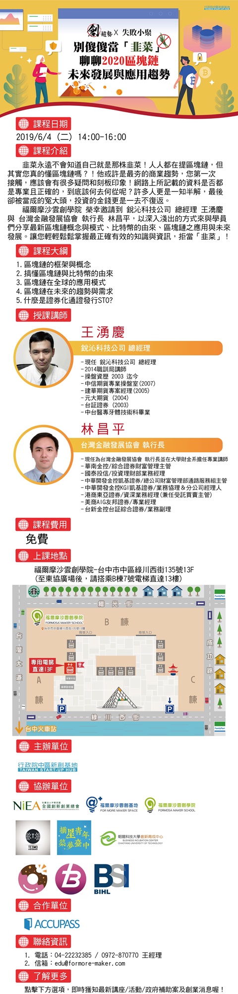 6/4【創趨勢】失敗小聚:別傻傻當「韭菜」!聊聊2020 區塊鏈未來發展與應用趨勢