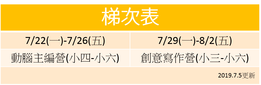 確認開班梯次:7.29【寫作營 (小3-6)】第4梯(2019.7.5更新)