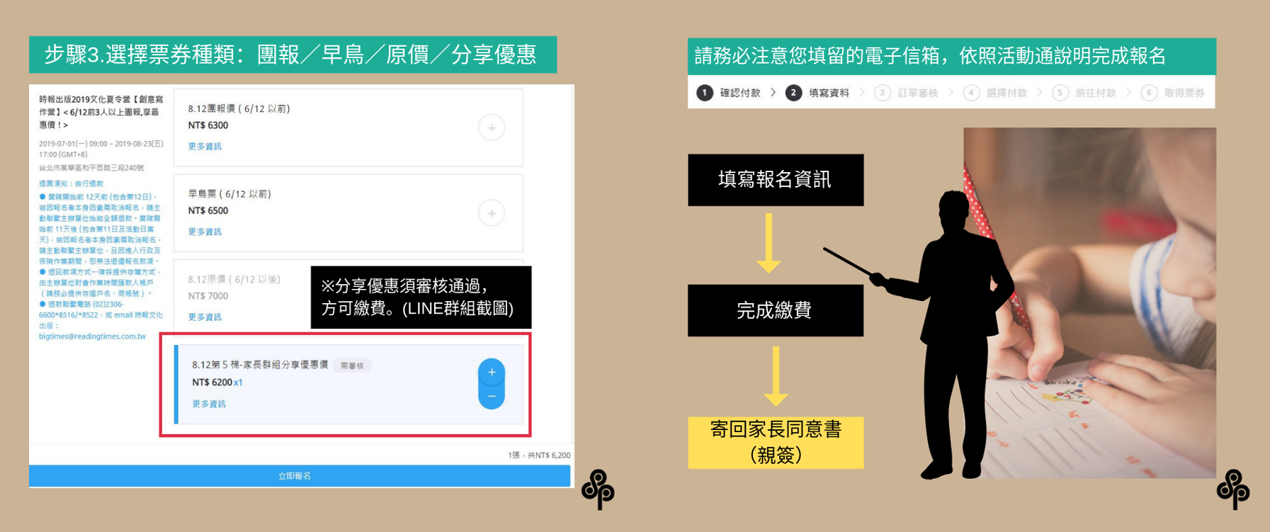 ◎ 6/12 前 3位小朋友(以上)一同報名, 即享有 團報價 6,300元/1人。