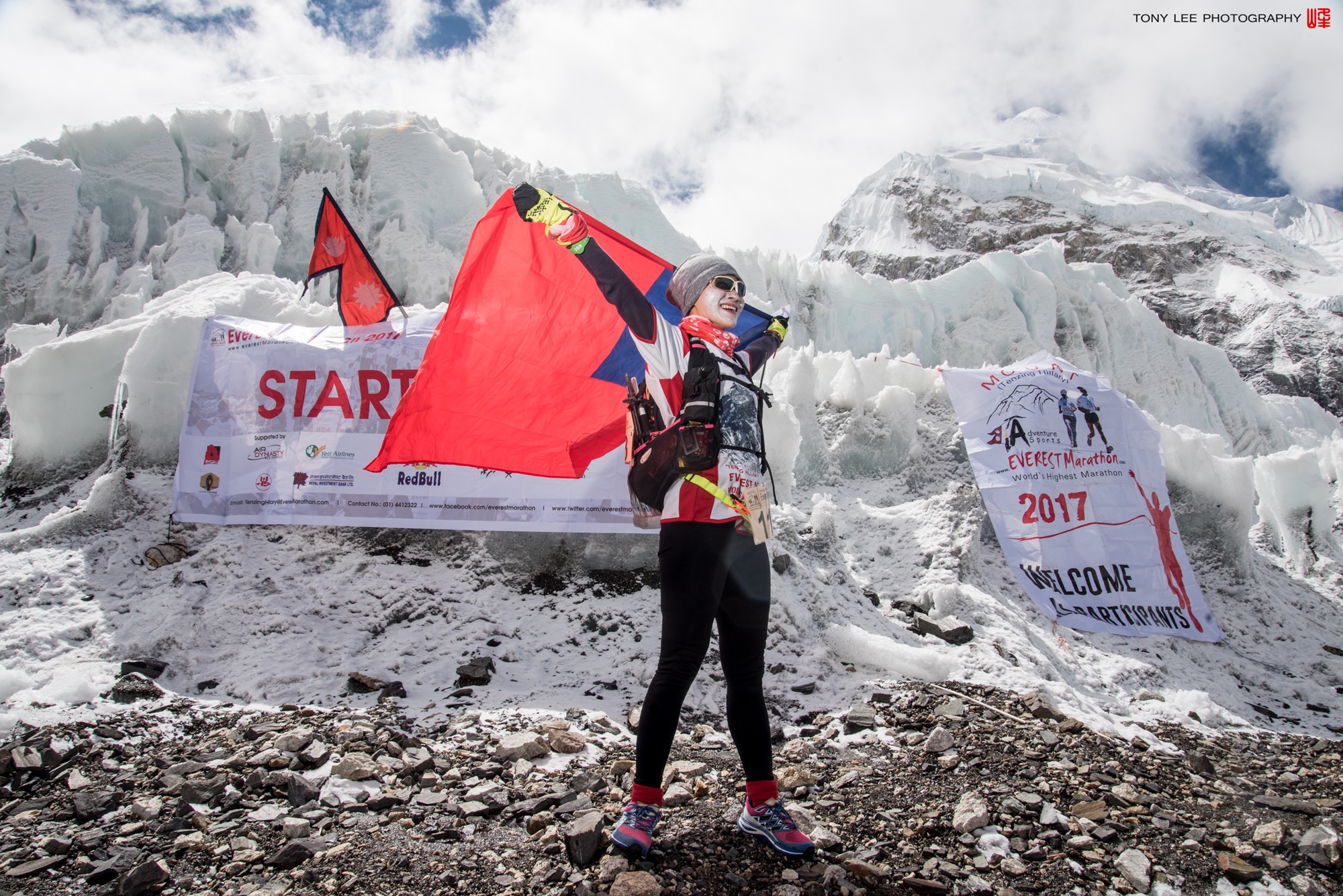 2017年她參賽聖母峰馬拉松,全程在超高海拔3500公尺以上進行。這是一場死亡如臨隨行的賽事,更是一場學習敬畏與謙虛的賽事。有人做足了準備卻無法站上起跑線,有人開跑了卻因為各種理由選擇中途棄賽。