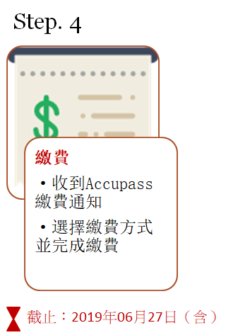● 2019年06月21日00:00起 至 06月27日23:59止為繳費期間