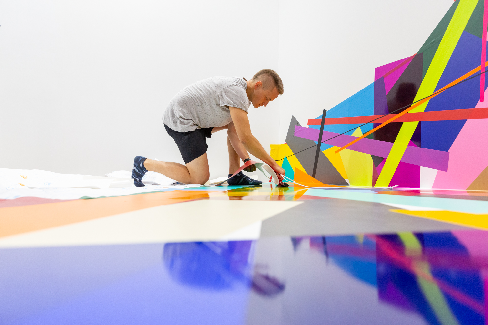此外,藝術家們更將「貼」進空間,教大家如何用各色膠帶進行一場神奇偽裝術,創作出欺騙你我雙眼的的錯覺空間。
