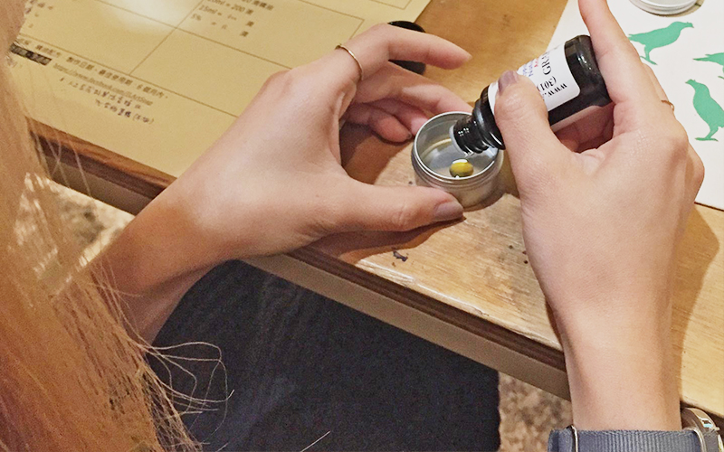 過程中可依自身喜好,以植物精油調製出專屬氣味,並了解如何選擇自己的香氣,並為家人朋友挑選搭配。