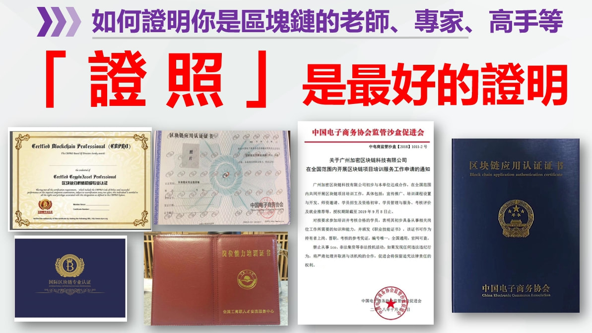 課程結束後您會取得大陸工信部、國際區塊鏈認證單位以及魔法講盟國際授課證照,