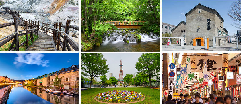 | 第 2 天 | 飯店/登別地獄谷/名水羊蹄公園~日本百選名水/浪漫天堂~小樽運河(途經)、北一硝子館、音樂盒博物館、百年蒸氣鐘、銀之鐘咖啡館、北菓樓/札幌大通公園/札幌市區觀光~日本現存最古老的鐘樓~時計台及國家重要文化財產~舊道廳(途經)/特別安排~自由夜訪狸小路商店街 |