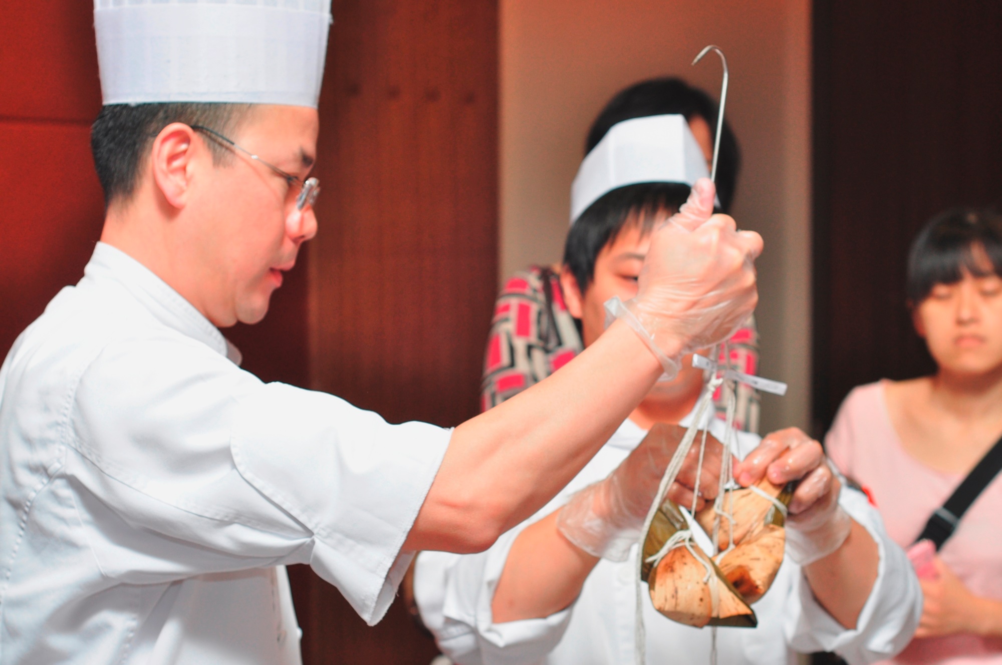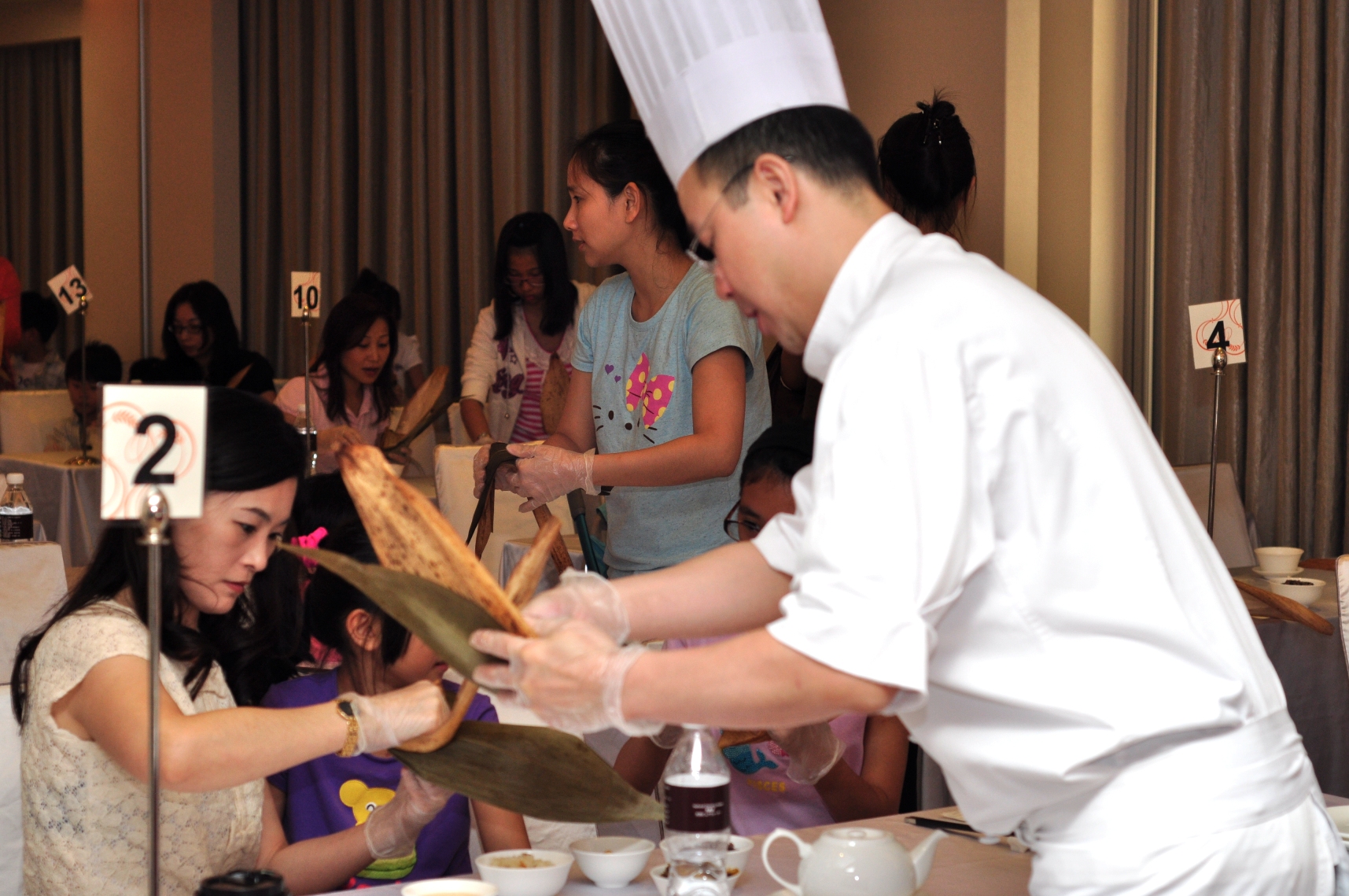 由新竹豐邑喜來登大飯店采悅軒主廚「張霖師傅」親臨教授粽子