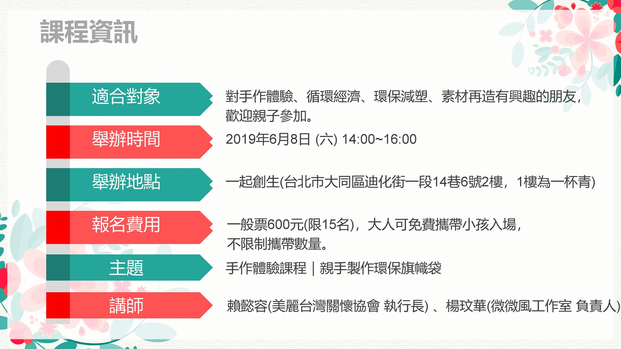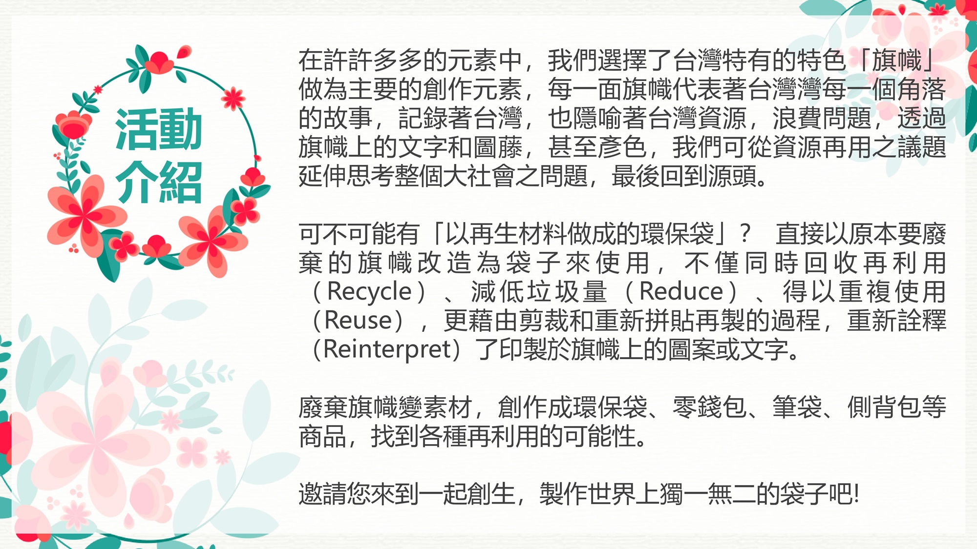 手作體驗課程|親手製作環保旗幟袋 I