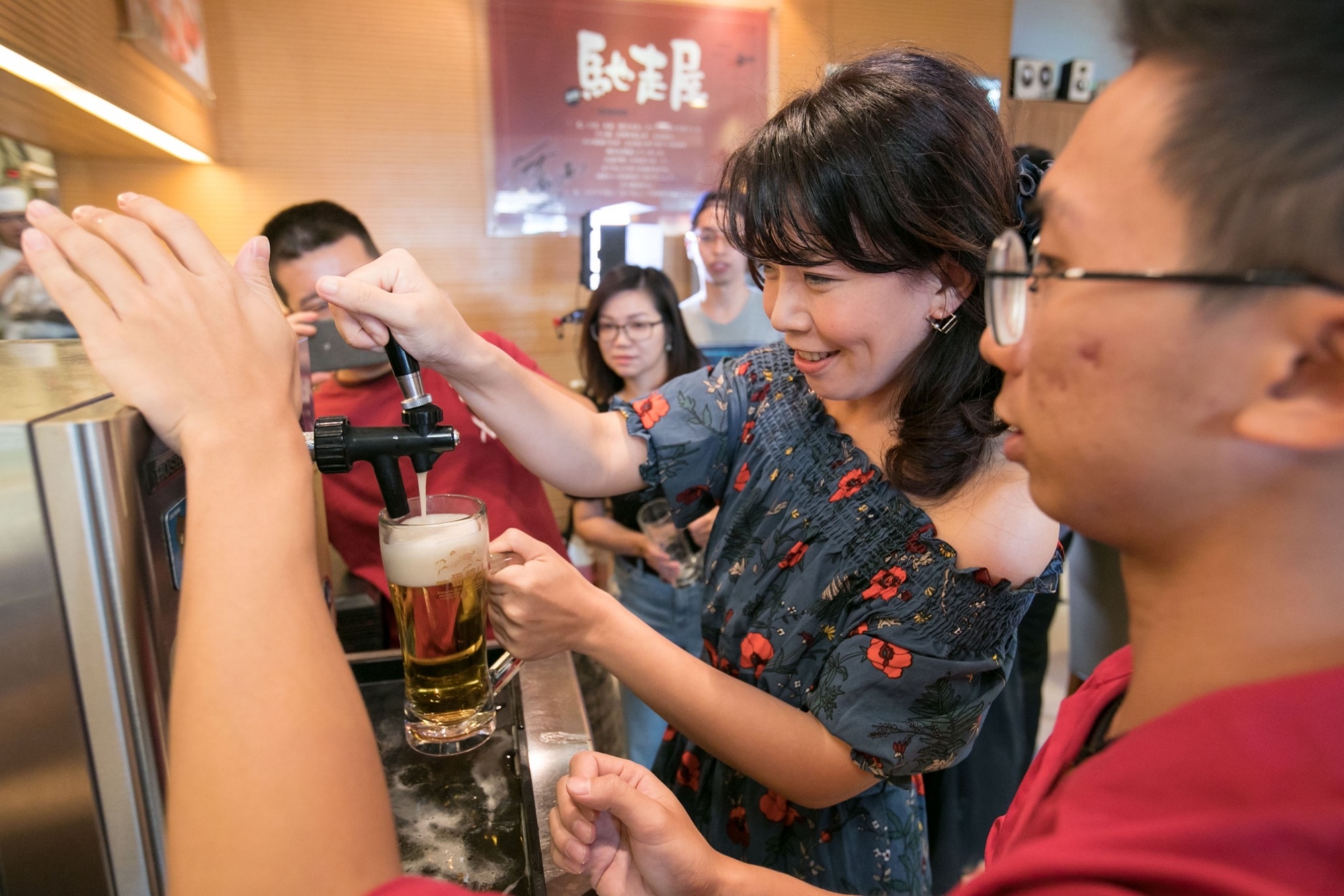 親自體驗調配泡沫與酒液的3:7黃金比例,簡單兩步驟,輕鬆倒出好喝生啤酒。