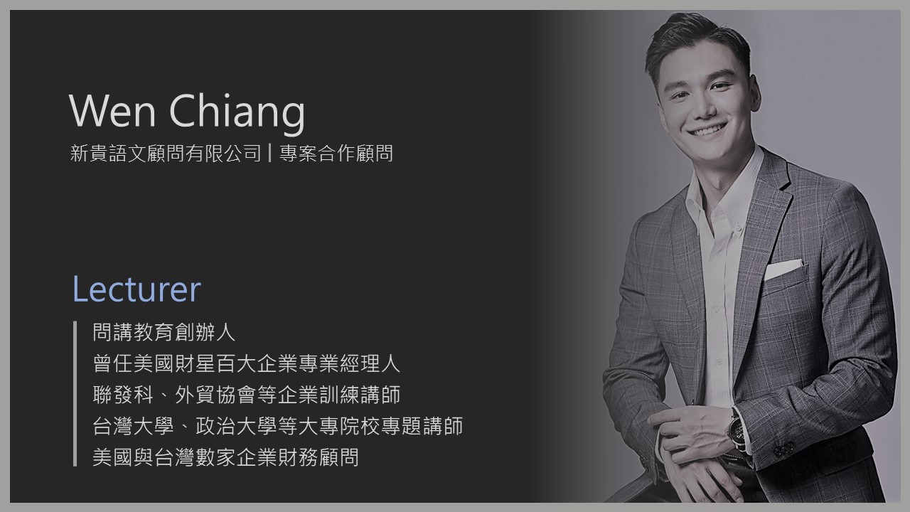 本次課程,邀請到新貴語文顧問(CLN)創辦人兼首席顧問 Clarence以及社交禮儀專家 Wen,雙人組合指導大家正確的英文用字遣詞與表達方式,搭配各項社交禮儀技巧,讓你不僅能化解危機,還有機會為自己創造更好的職涯機會!