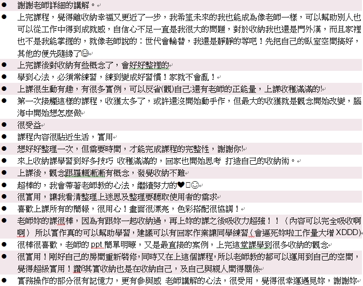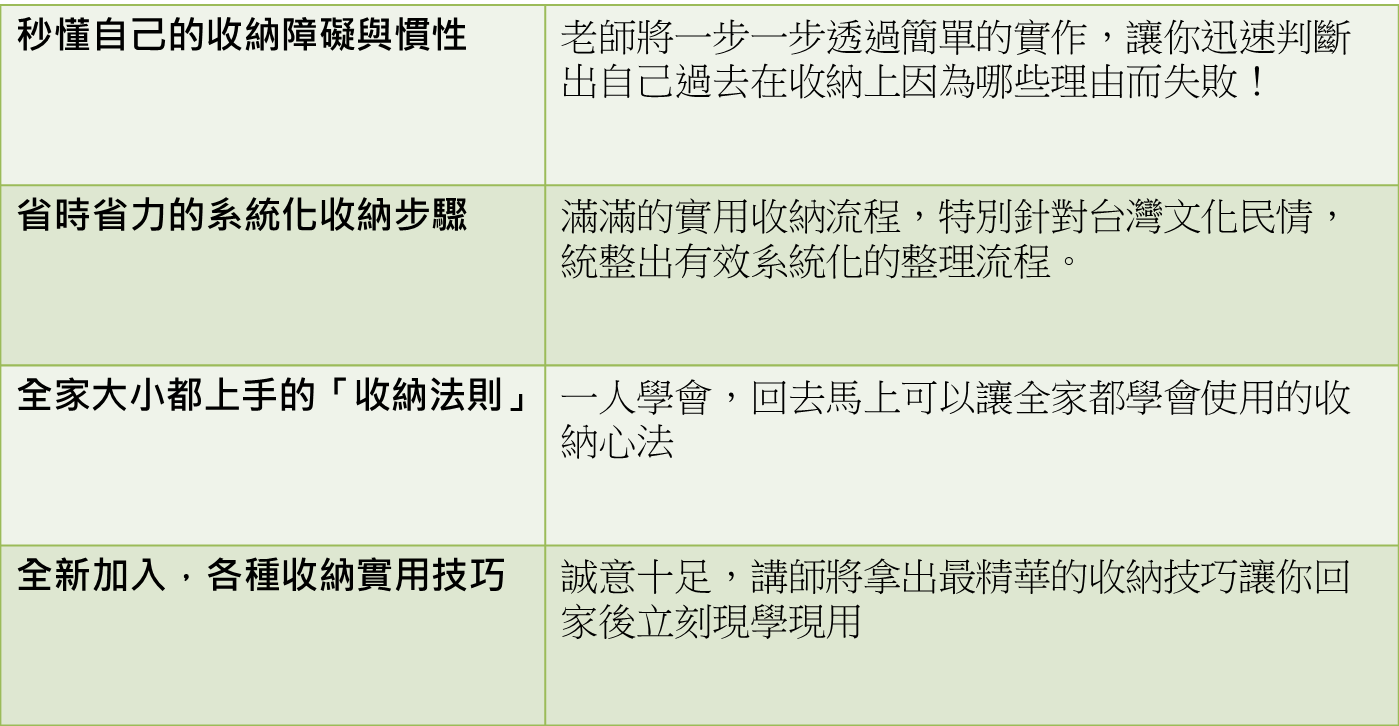 這門課程是有「台灣收納教主」讚譽的廖老師精心設計
