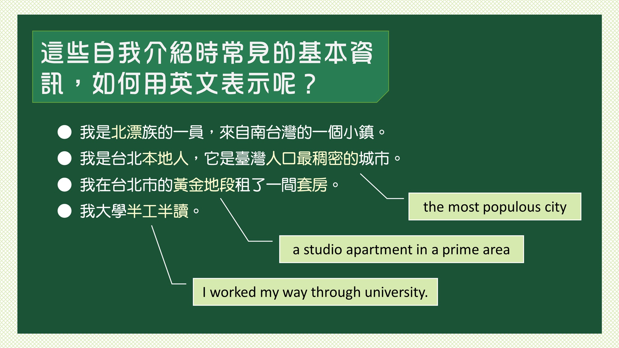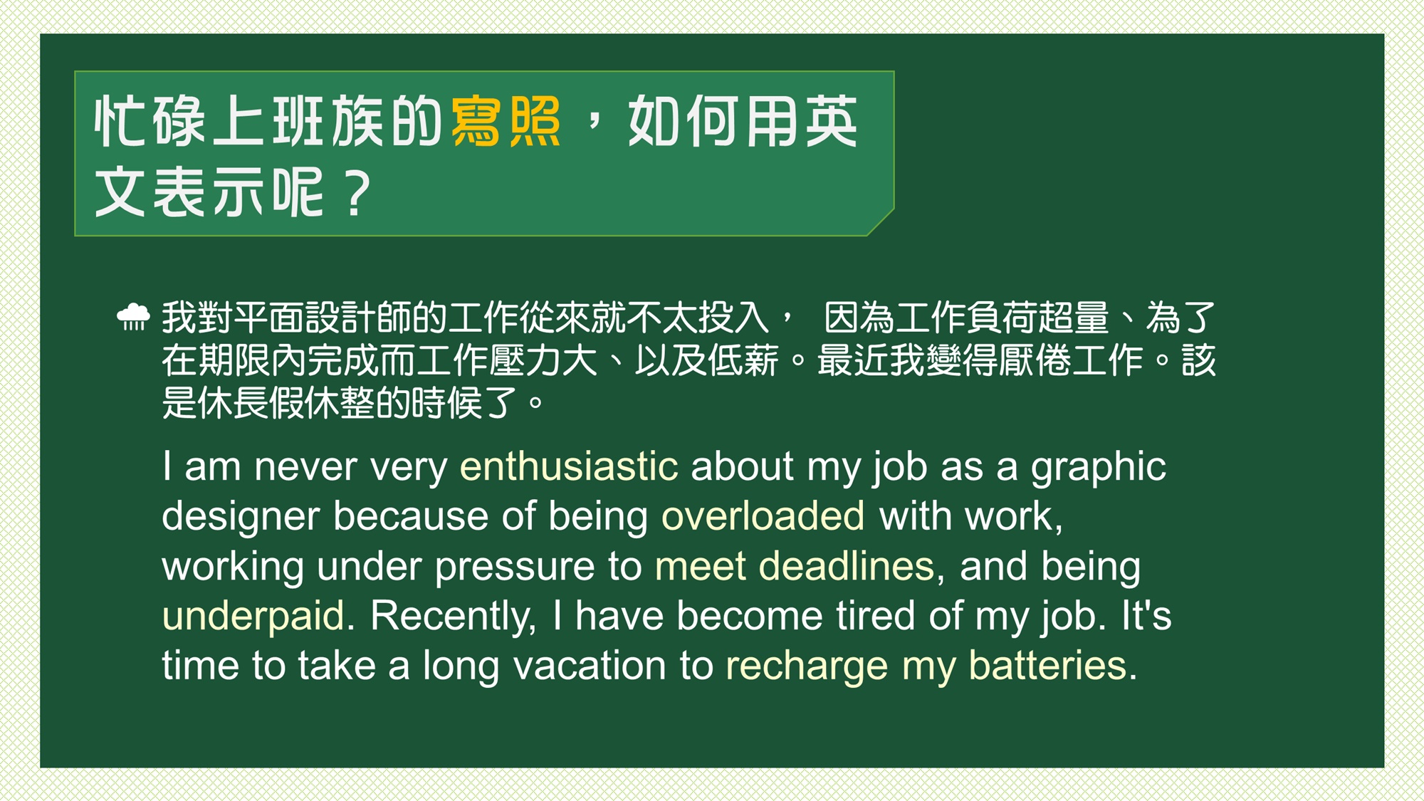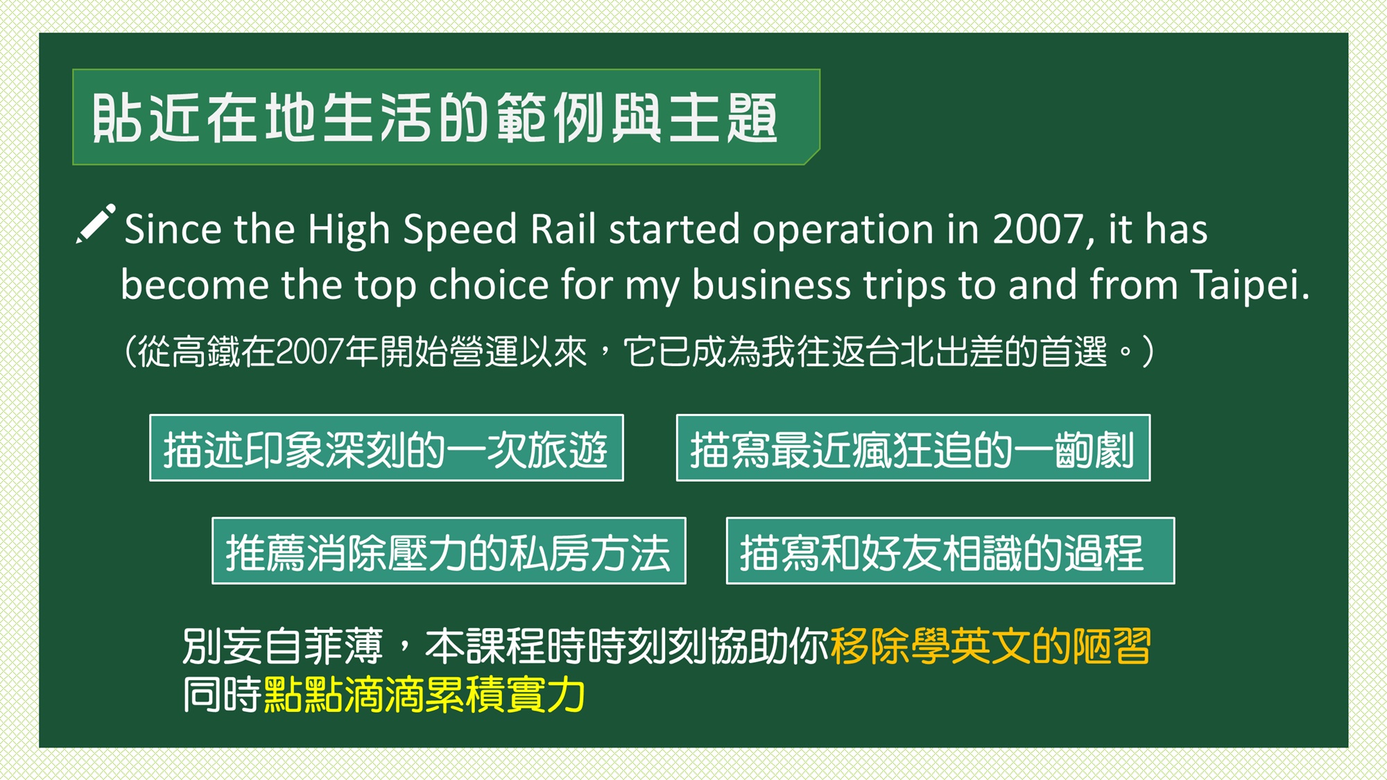 用英文說寫精彩的生命故事:生活經歷表達訓練(週日)