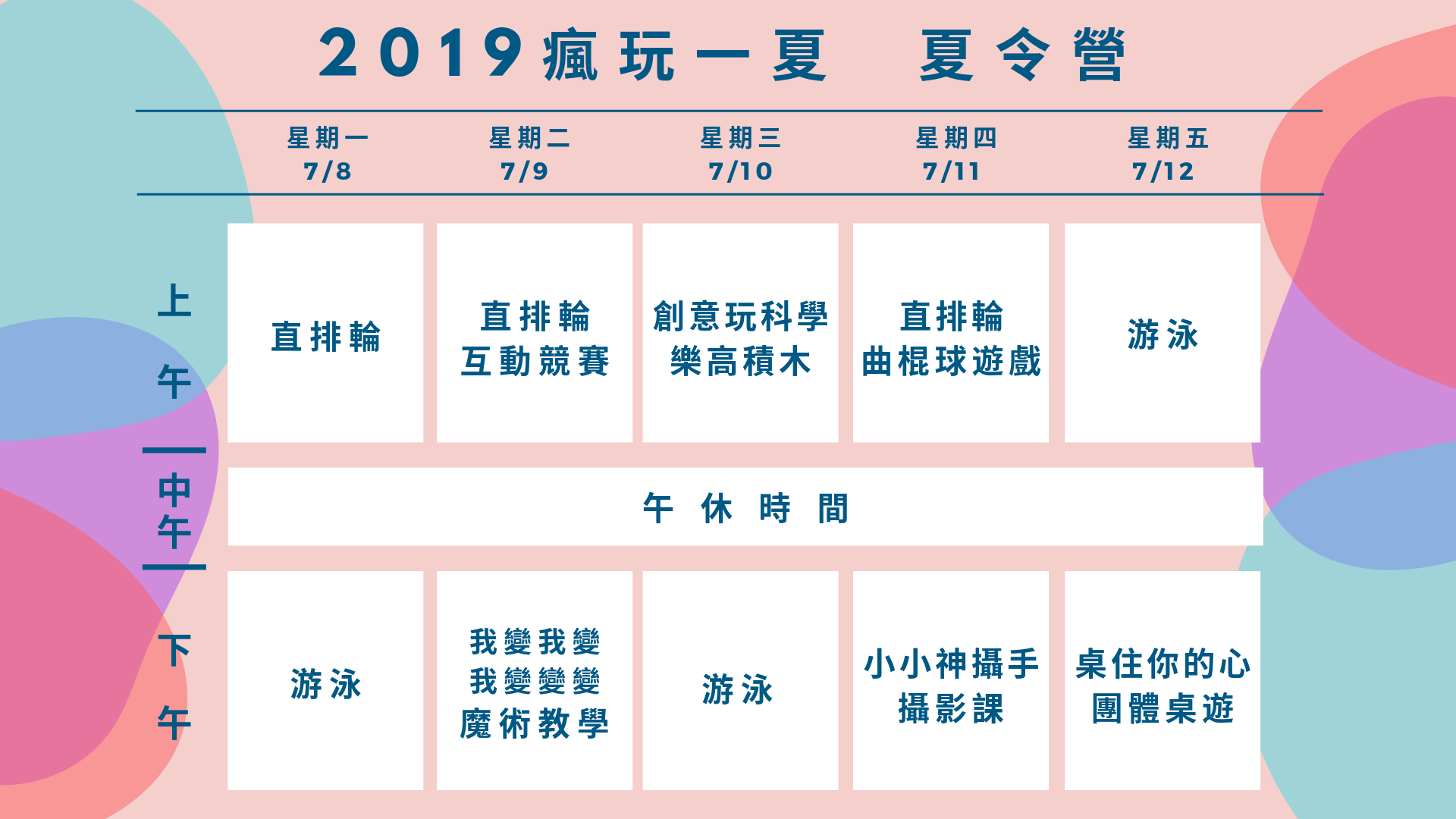 活動日期:2019.7.8(星期一)~2019.7.12(星期五)