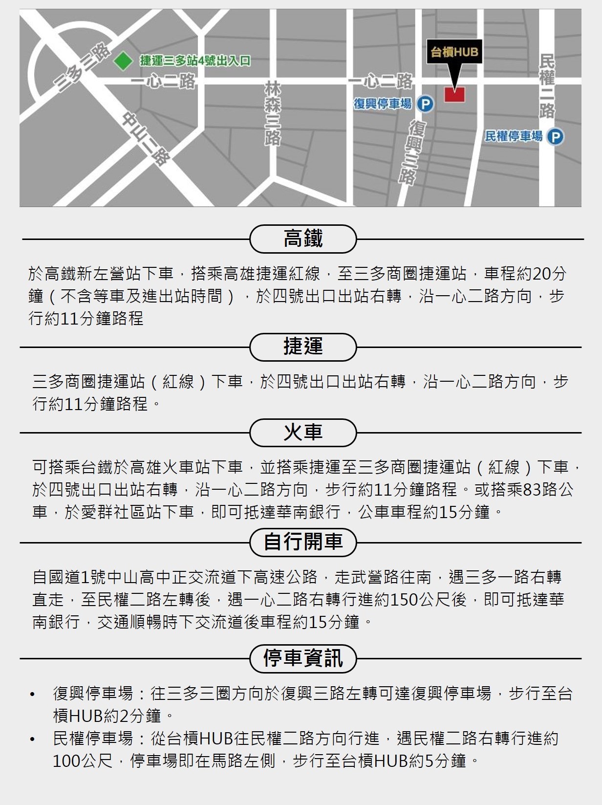 活動地點:高雄市前鎮區一心二路33號3樓(台槓創新HUB)