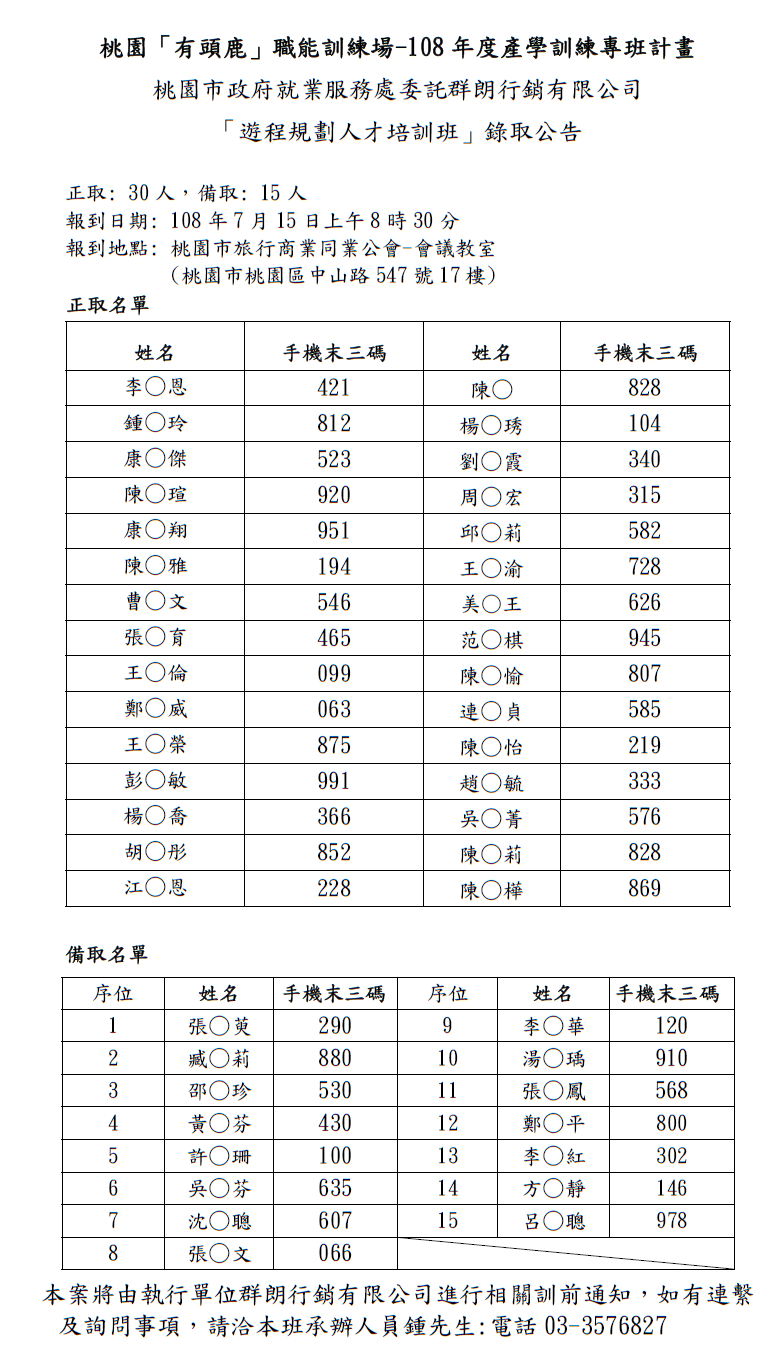 錄取名單│