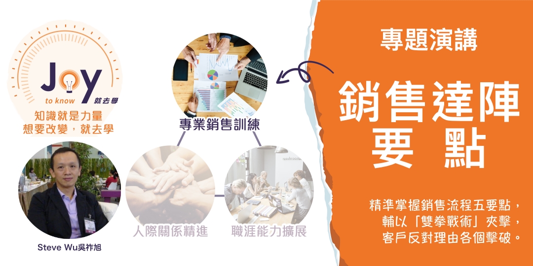 客戶的異議,像是:「我需要考慮一下」、「價格太貴」、「我需要和我的配偶/經理/主管/老闆/董事談談」...如果你分不清楚他是講真的還是假的,你可能就錯失了處理他的機會!這場演講將讓你強化逆轉異議的能力,並且熟悉銷售的五個重要階段,讓你總是輕鬆處理客戶顧慮,達到成功成交!