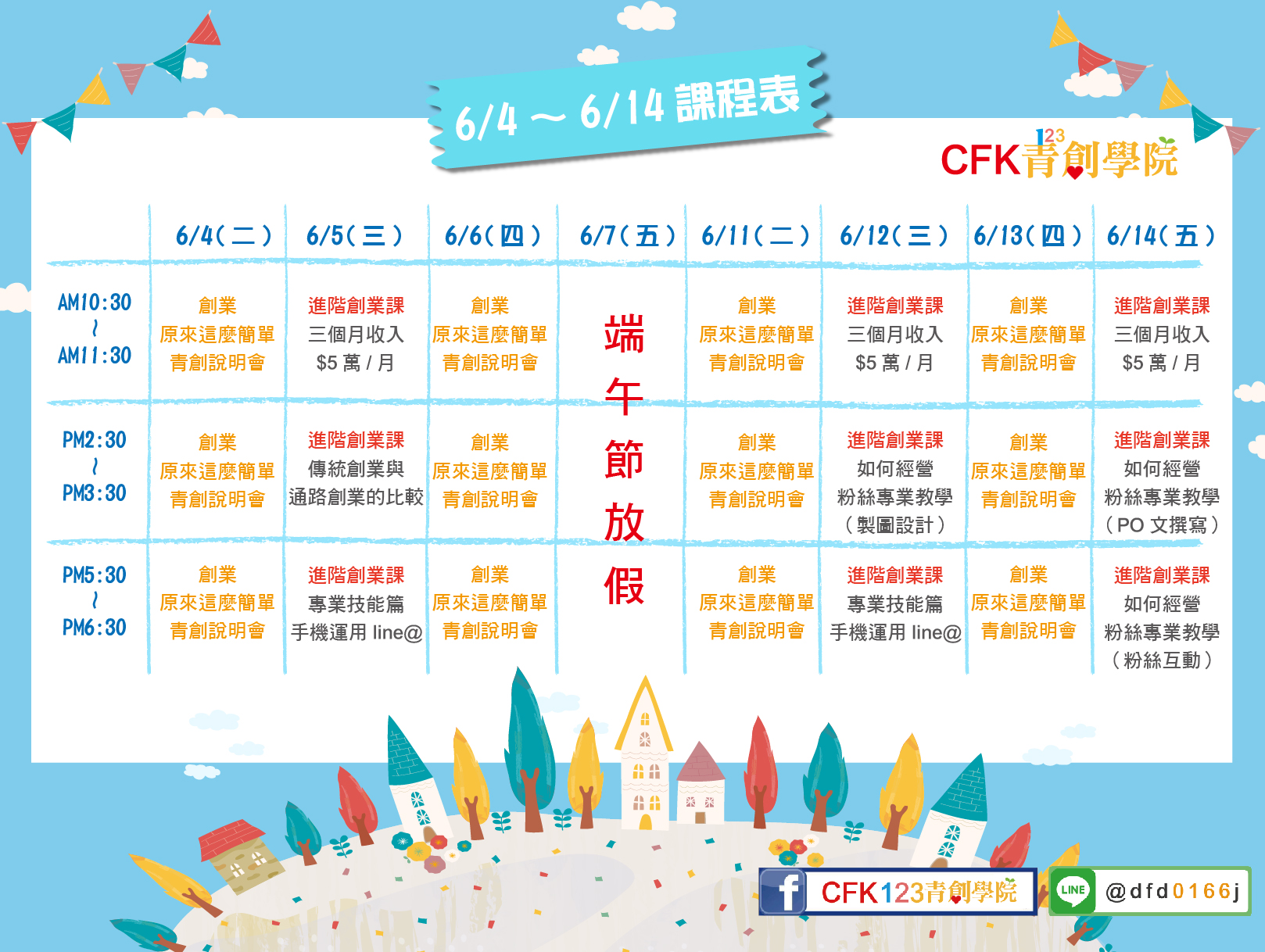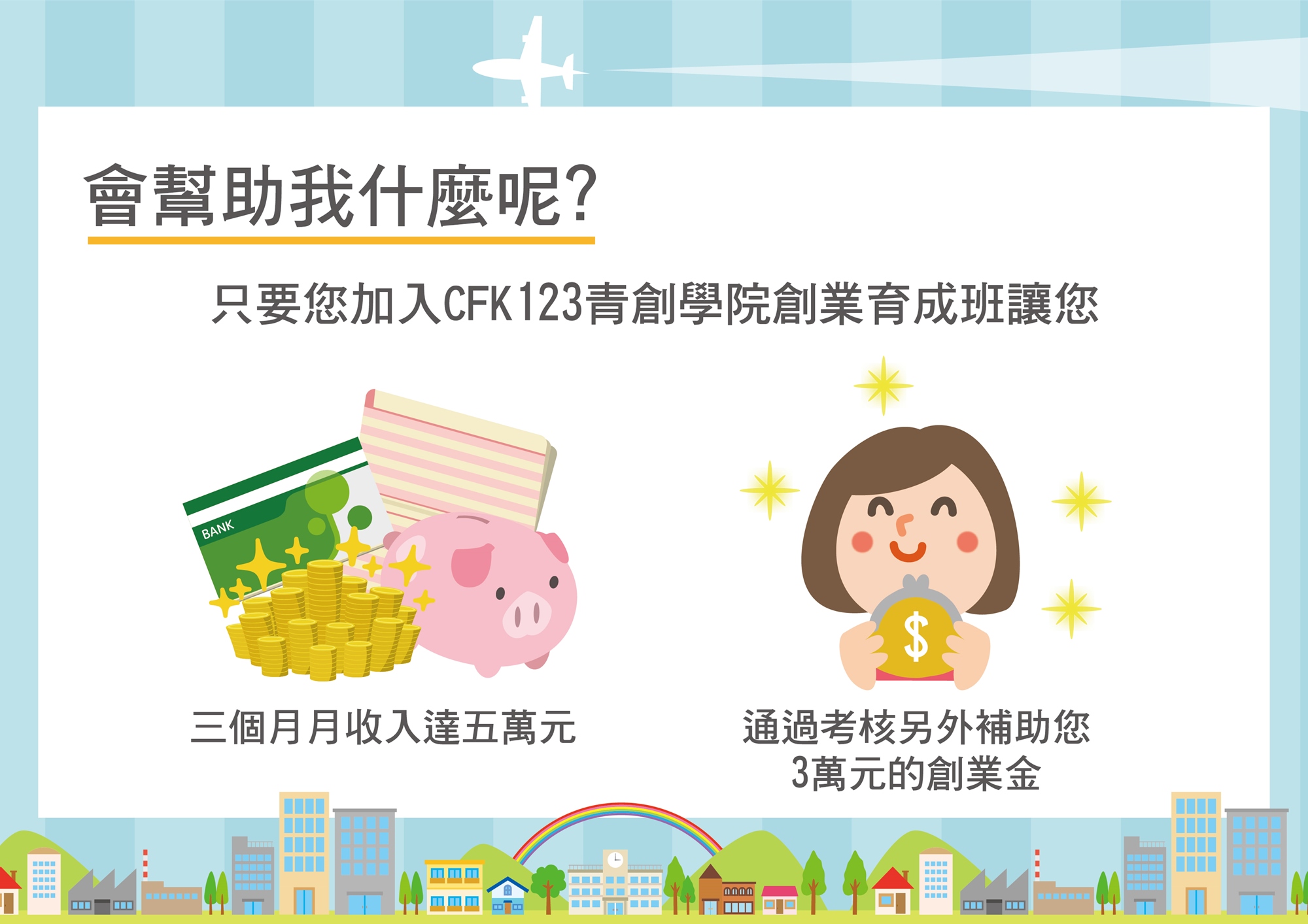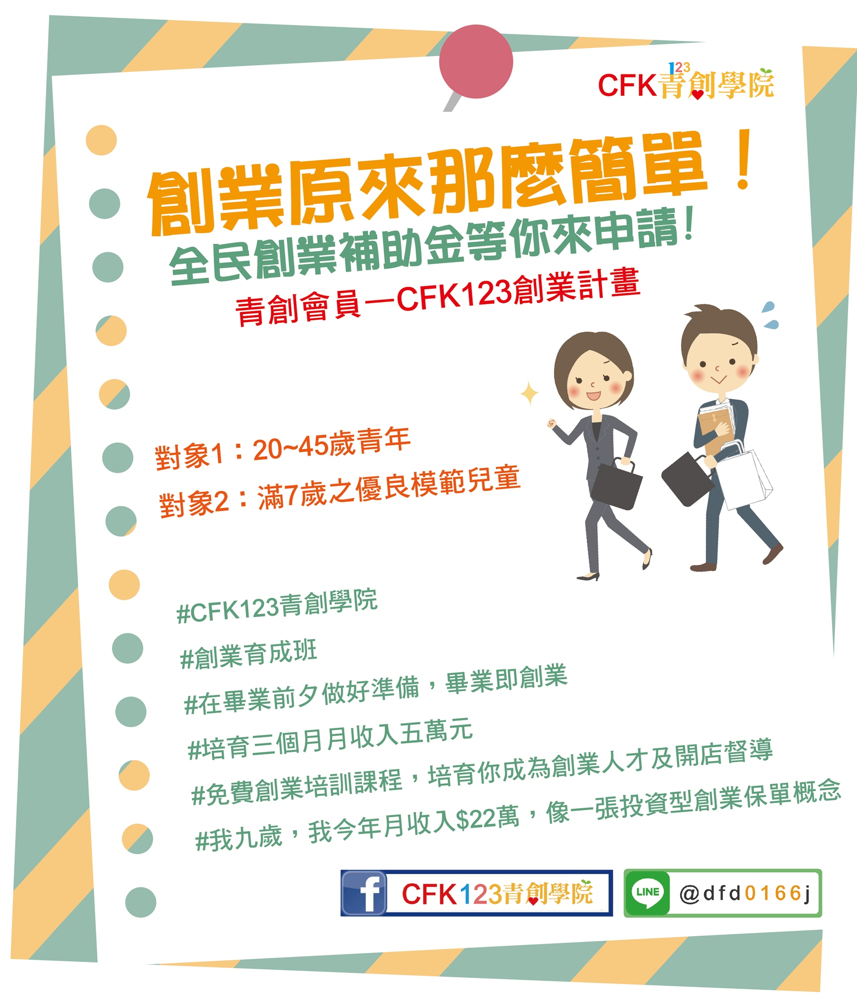 #CFK123青創學院#創業育成班#畢業即就業#三個月月收入五萬元#創業培訓課程#有夢我們一起闖吧