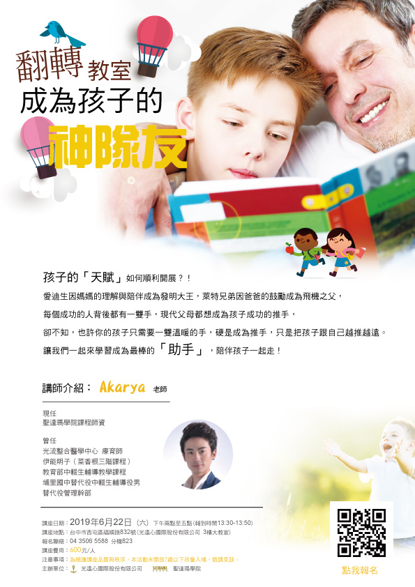 3.講座中拍攝之影片、照片內容,非涉及個人隱私部份將授權予光遠心國際股份有限公司