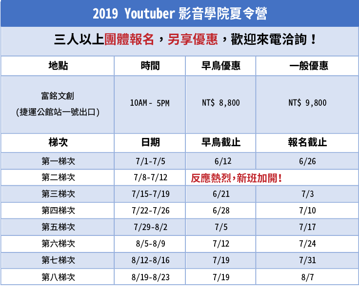 「Youtuber 影音學院夏令營&雙週班」說明會,預計於 7/27 (六) 下午2點舉行。