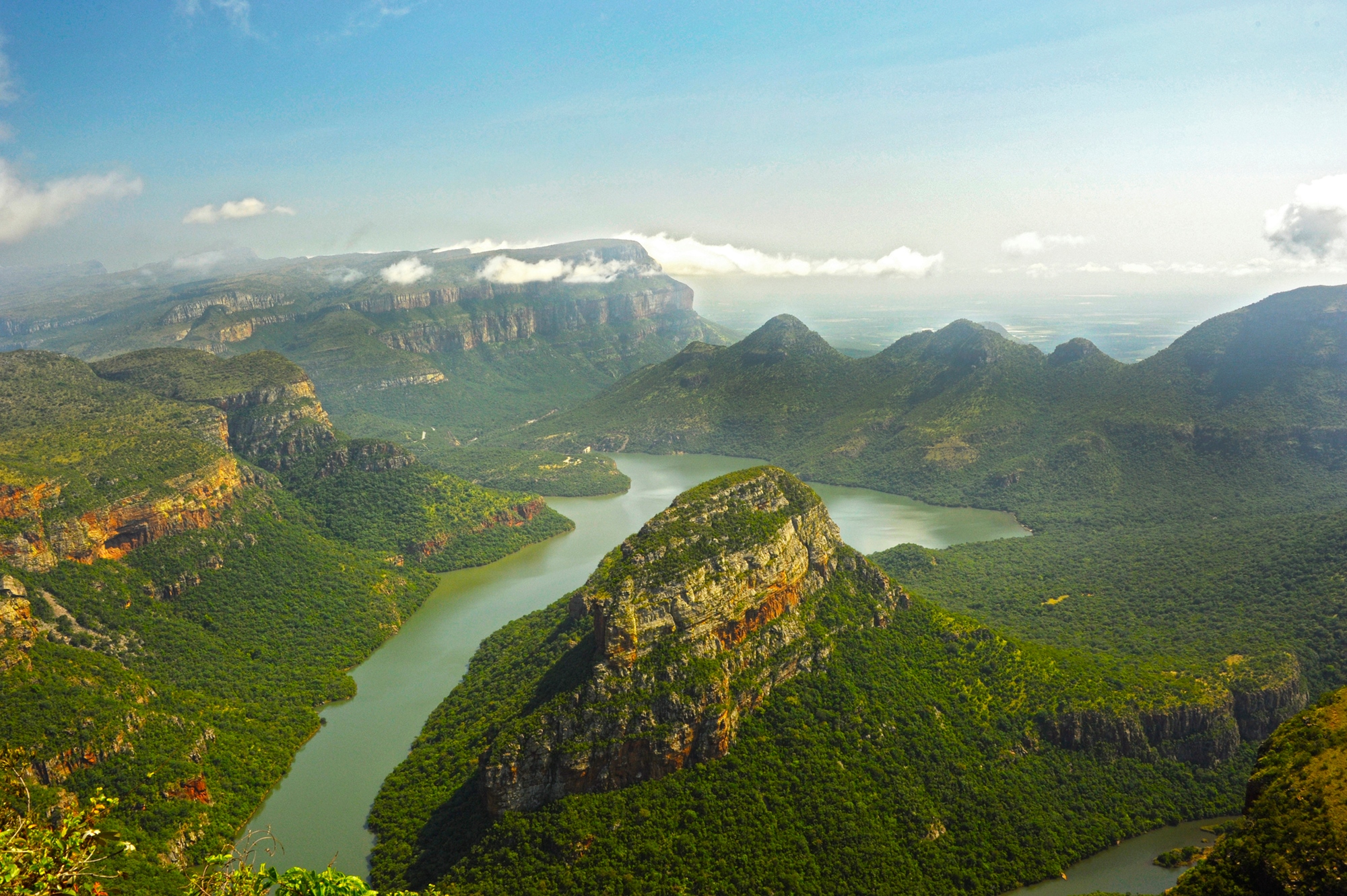 南非的布萊德河峽谷,位於姆普馬蘭加省境內,從德拉肯斯堡的懸崖以南,壯闊的山脈被河流沖刷出一道峽谷,綿延了800多公尺,其間瀑布、奇石,景觀渾然天成、美不勝收。