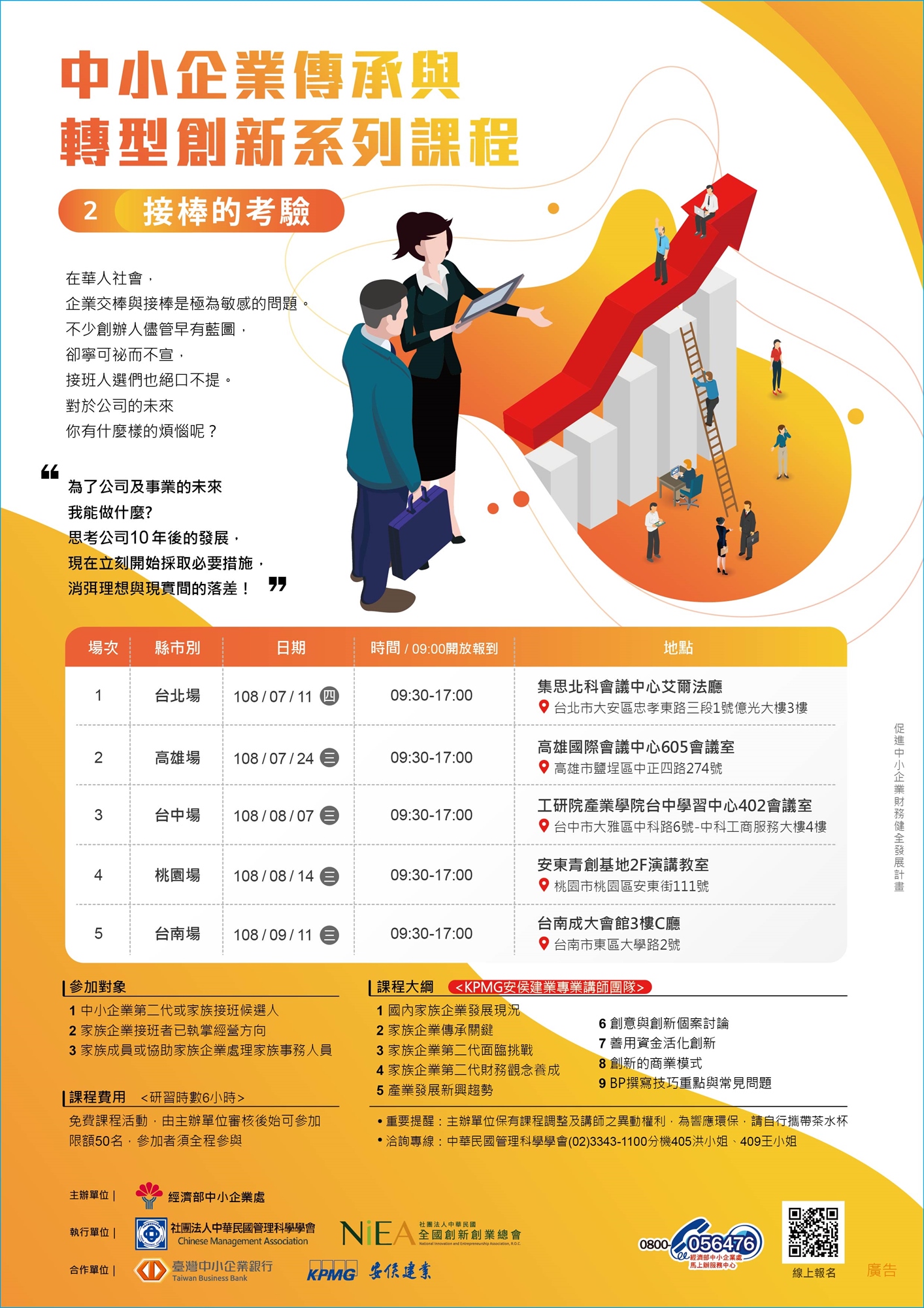 中小企業傳承與轉型創新系列課程-系列2接棒的考驗【台北場】