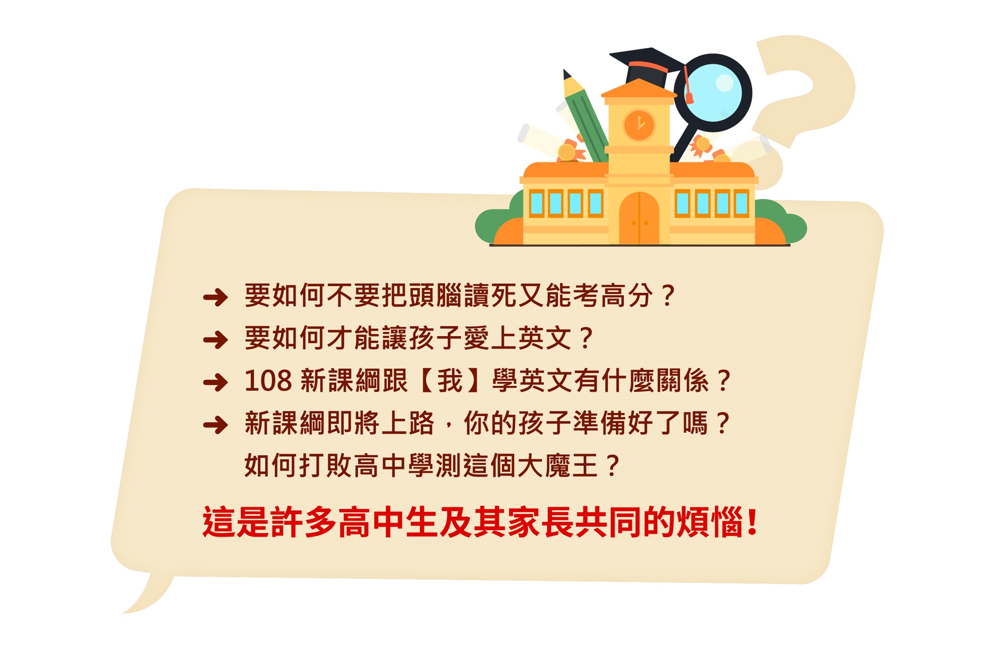 國中時英語程度不錯的孩子,有 90% 都不知道高中英文在難度上有極大的改變,在進入高中第一次段考往往會面臨重大挫折!太多孩子有適應不良的問題,如單字量不足、文法難以理解等等,日積月累之下,往往很快就徹底放棄英文!