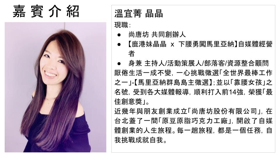 本期嘉賓:【新網紅讀書會】創辦人-Monica x 【尚唐坊】共同創辦人-晶晶