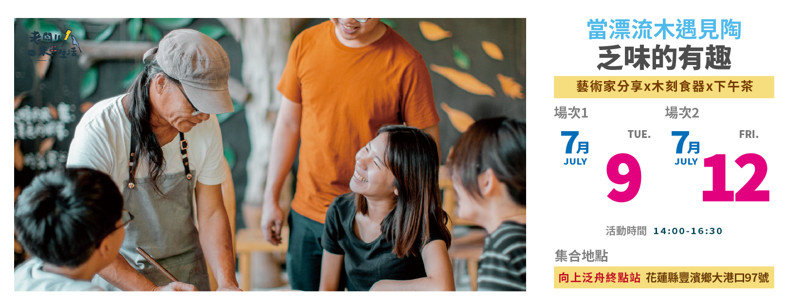 - 需來電訂房:0971-566188(09:30-12:00 / 13:00-18:30),訂房時請告知參加「老闆!!來串生活」。