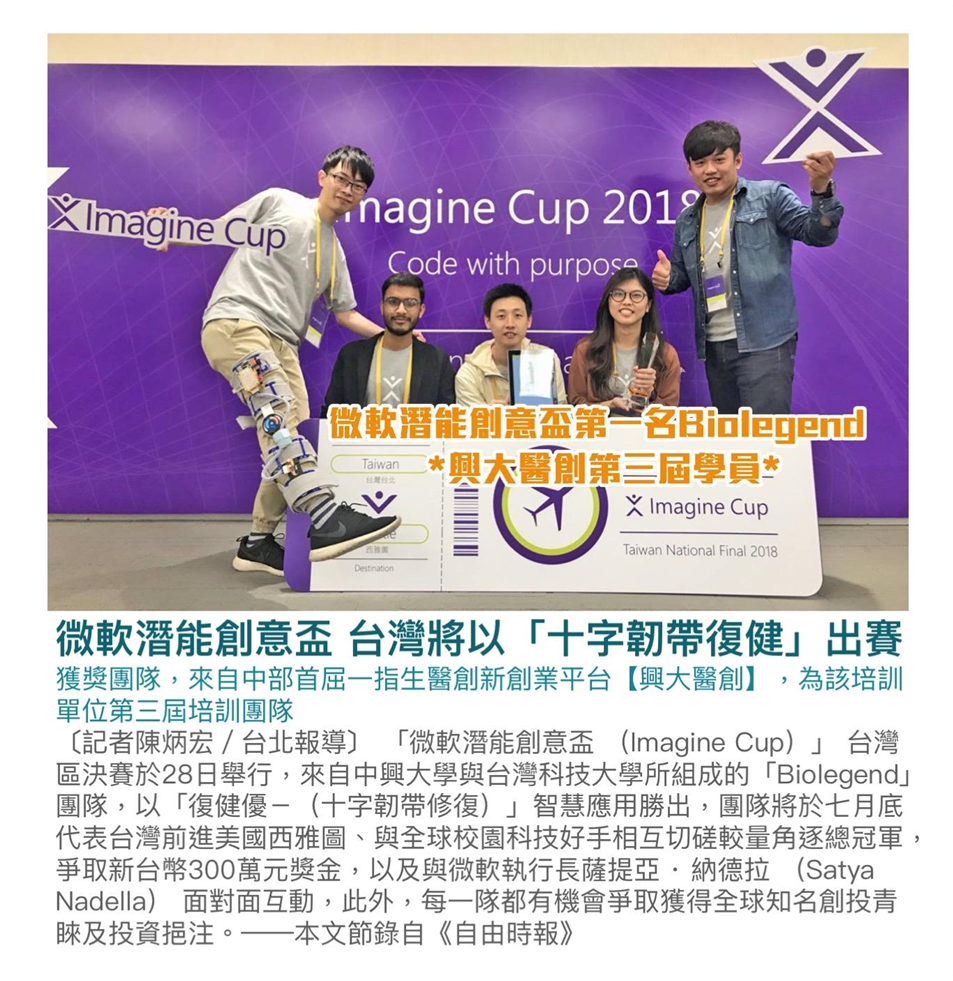榮獲「微軟潛能創意盃第一名」,代表台灣跟全球參賽