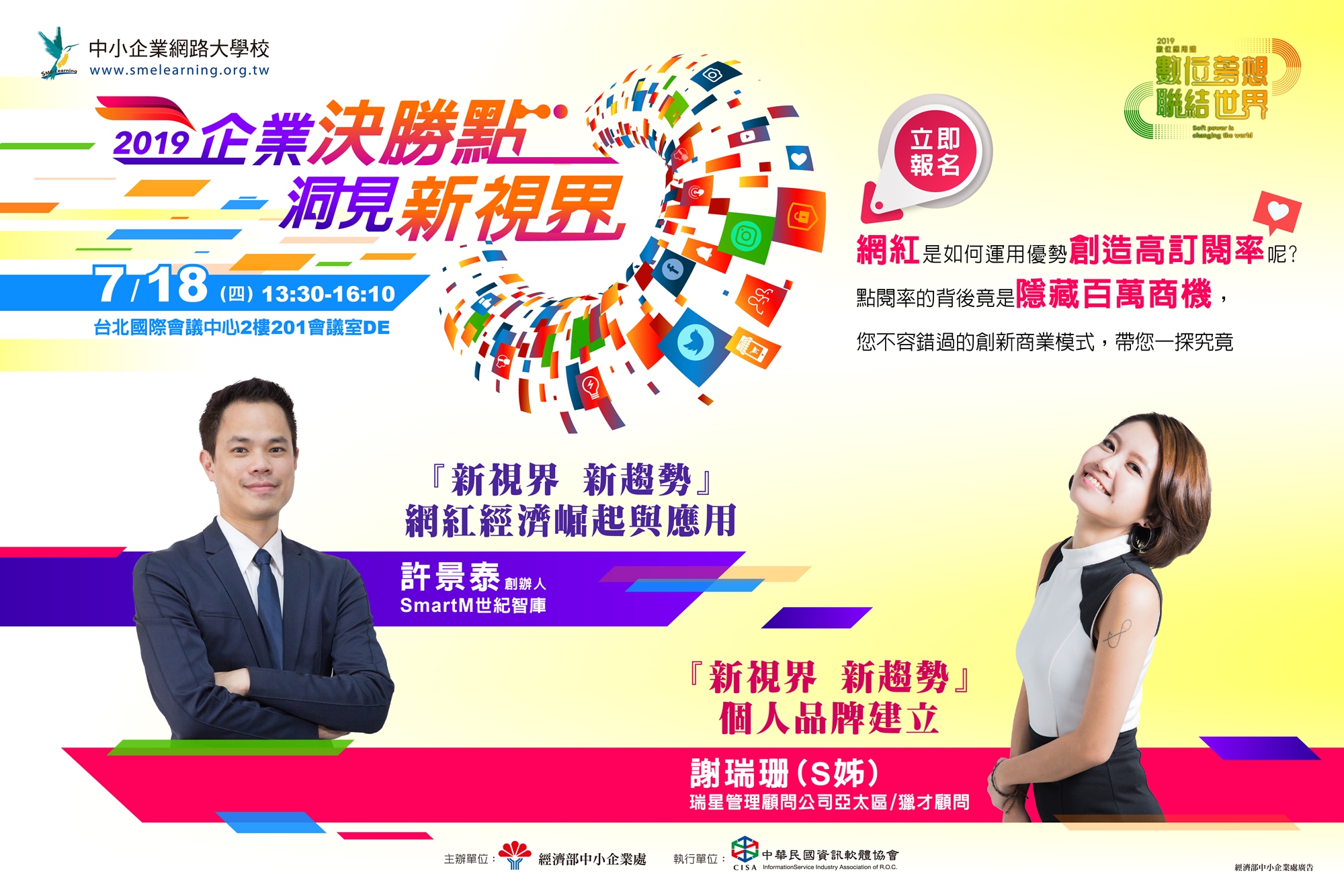 14:15-14:55 | 『新視界 新趨勢』-網紅經濟崛起與應用 | SmartM世紀智庫 許景泰 創辦人 |