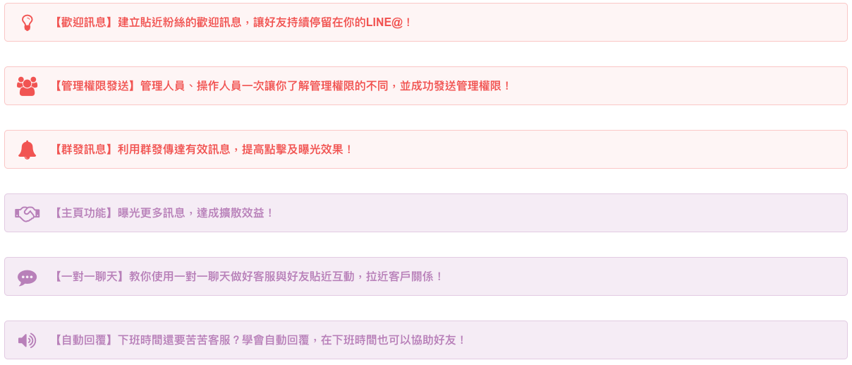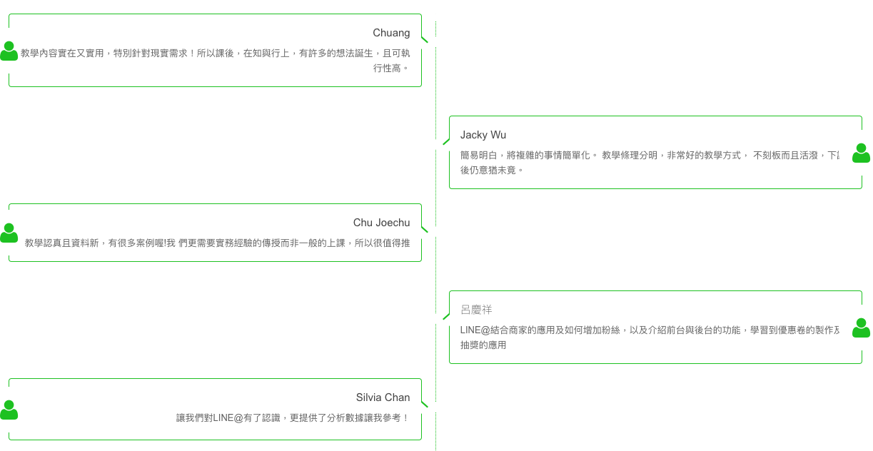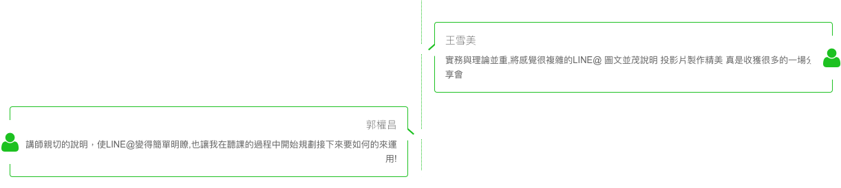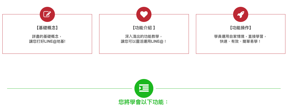 課程實作的教學方式讓學員從操作中了解LINE@的各項功能,而不是停留在以為聽懂,卻無法實用的狀態中。