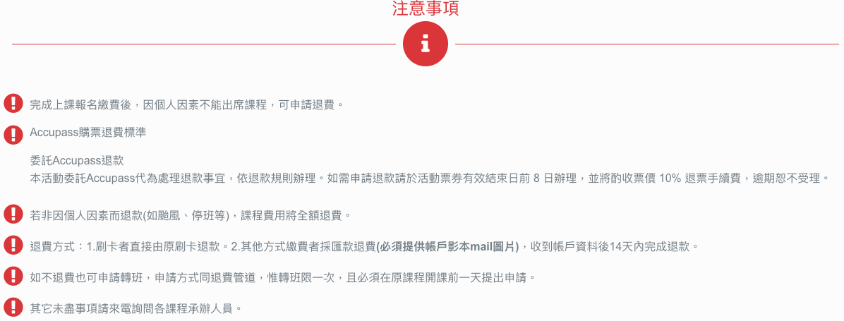 *發票於課後開立