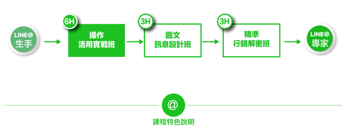 而操作活用實戰班的課程設計是希望讓剛接觸LINE@或對LINE@還沒有概念的學員能夠透過課程講解與實作的方式,在課堂上直接設定自己要使用的LINE@,並了解LINE@的所有功能,讓學員上完課就能帶著自己設置好的帳號離開,省掉模索操作,求教無門的大把時間,專注在使用LINE@開創業績,經營顧客這些能有實質作用的事物上!
