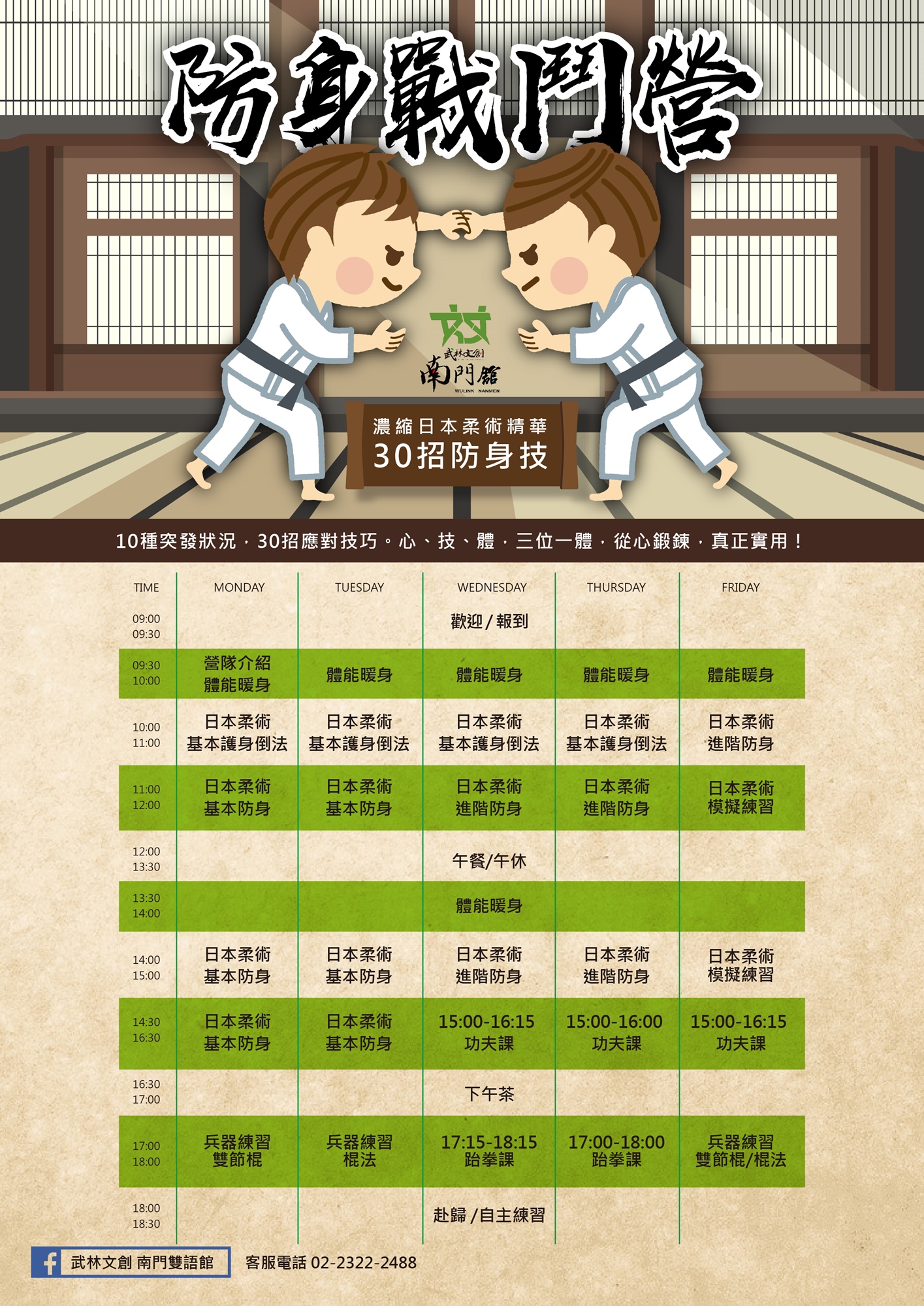 〖=防身戰鬥營課表=〗