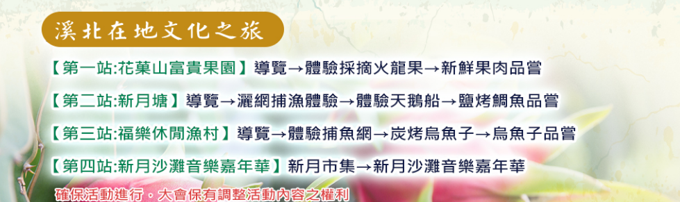 (五)報名費用::每人:200元(含交通、保險、體驗及品嘗美食)
